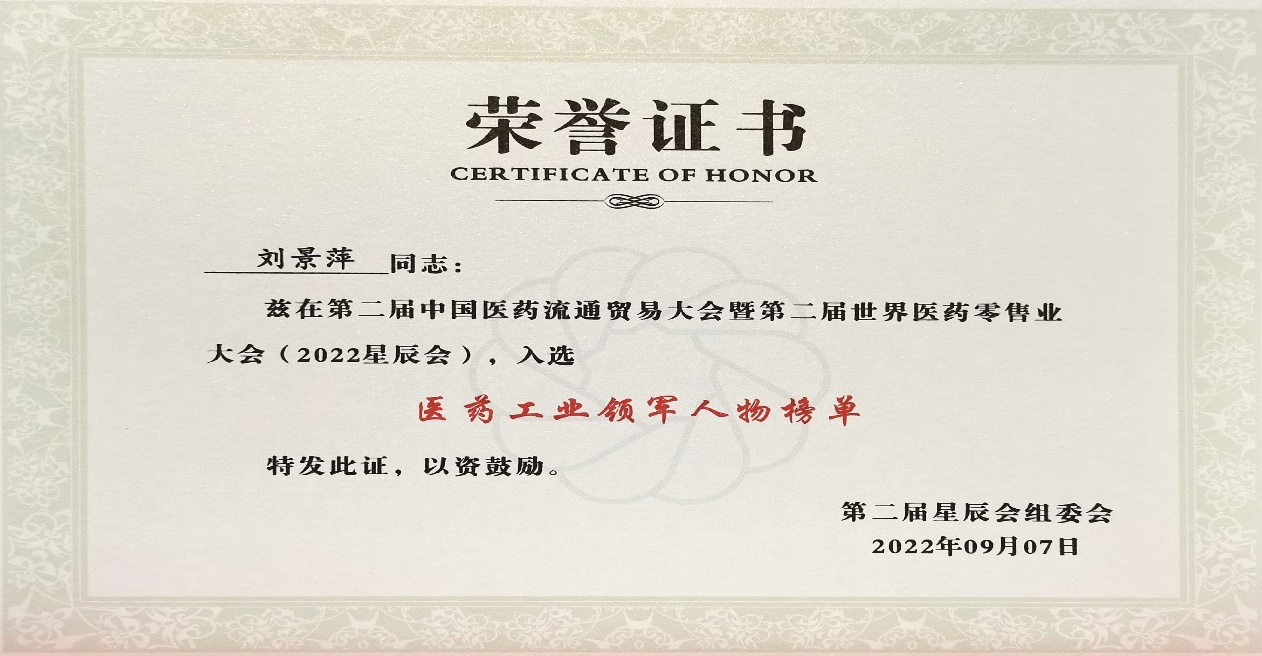 本次星辰会期间,PA尊龙时凯斩获颇丰,获得多项行业奖项及荣誉。在开幕式上,刘景萍董事长荣获“医药工业领军人物”称号。